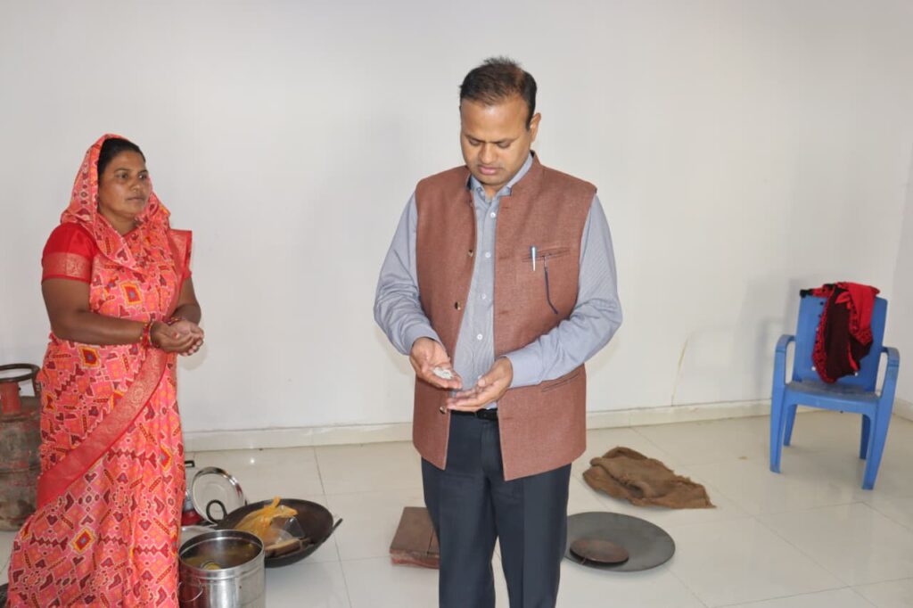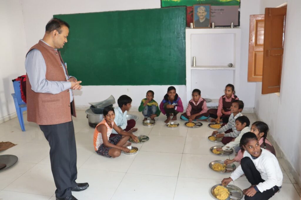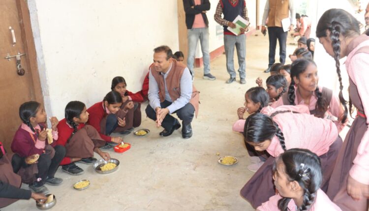 जिलाधिकारी ने मिड डे मिल में बनने वाले चावल की गुणवत्ता को भी देखा