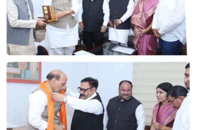 #राष्ट्रीय पत्रकार सुरक्षा परिषद के राष्ट्रीय अध्यक्ष देवेंद्र कुमार मिश्रा एवं प्रदेश संरक्षक उत्तर प्रदेश प्रमोद शर्मा ने रक्षा मंत्री से दिल्ली में मुलाकात करके स्मृति चिन्ह किया भेंट#