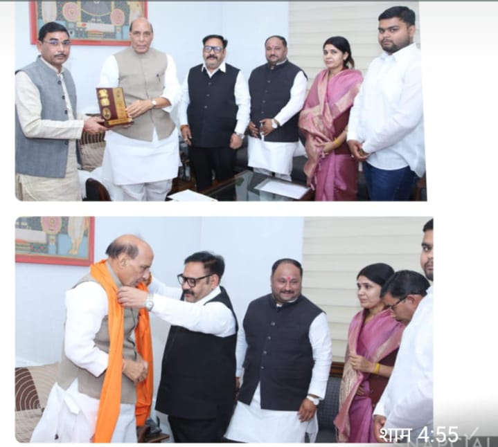 राष्ट्रीय पत्रकार सुरक्षा परिषद के राष्ट्रीय अध्यक्ष देवेंद्र कुमार मिश्रा एवं प्रदेश संरक्षक प्रमोद शर्मा ने देश के रक्षा मंत्री राजनाथ सिंह जी से नई दिल्ली में शिष्टाचार भेंट कर स्मृति चिन्ह प्रदान किया साथ में उपस्थित रहे डॉ0 रंजीता शर्मा एवं ऋषि चौरसिया यह मुलाकात संगठन की भावी योजनाओं एवं पत्रकार सुरक्षा से जुड़े अहम मुद्दों पर सार्थक संवाद के उद्देश्य से आयोजित की गई बैठक के दौरान राष्ट्रीय अधिवेशन में देश के विभिन्न राज्यों से पत्रकार प्रतिनिधि मंडल संगठन पदाधिकारी एवं मीडिया जगत से जुड़े वरिष्ठ जन शामिल होंगे अधिवेशन में पत्रकारों की सुरक्षा पर बल दिया जाएगा पत्रकारों के ऊपर आए दिन हो रहे हमलो की रोकथाम एवं फर्जी मुकदमो से पत्रकारों की सुरक्षा डिजिटल पत्रकारिता की चुनौतियों तथा संगठन किसी सकारात्मक रूप में मीडिया की हम भूमिका अत्यंत महत्वपूर्ण होती है