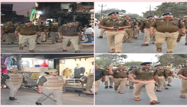 आजमगढ़।आगामी होली पर्व एवं पवित्र रमजान माह को सकुशल, शांतिपूर्ण एवं सौहार्दपूर्ण वातावरण में संपन्न कराए जाने के उद्देश्य से रविवार को पुलिस उप-महानिरीक्षक, आजमगढ़ परिक्षेत्र एवं वरिष्ठ पुलिस अधीक्षक आजमगढ़ डॉ0 अनिल कुमार द्वारा थाना कोतवाली पुलिस व पीएसी पुलिस बल के साथ नगर क्षेत्र में फ्लैग मार्च किया गया। फ्लैग मार्च थाना कोतवाली से प्रारंभ होकर महिला अस्पताल, वेस्ली स्कूल, चौक, चकिया, पहाड़पुर तथा अन्य घनी आबादी एवं संवेदनशील क्षेत्रों से होकर गुजरा। इस दौरान अधिकारियों द्वारा
